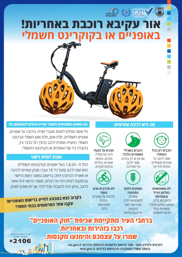 מבצע הסברה בנושא רכיבה אחראית ובטוחה באופניים ובקורקינטים חשמליים