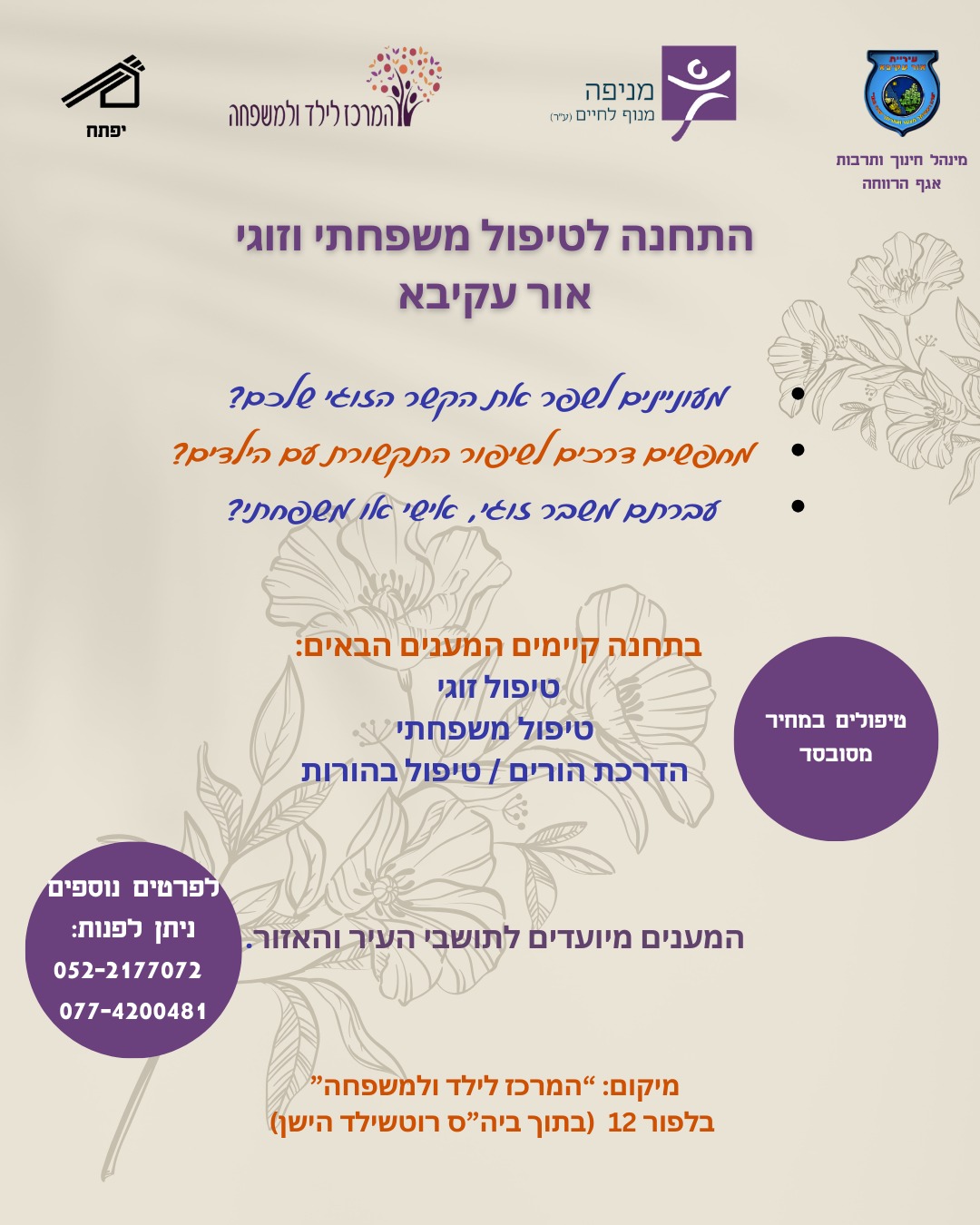 מרכז לילד ולמשפחה – בלפור 12 | טיפולים במחיר מסובסד | לפרטים נוספים – 077-4200481, 052-2177072